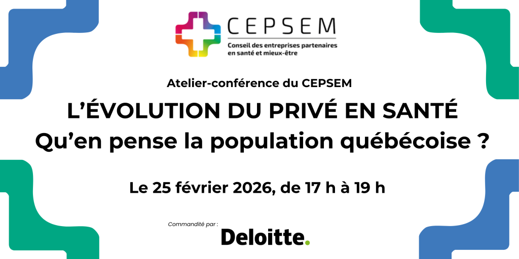 Le CEPSEM se veut la voix des organisations et entreprises en santé et mieux-être du secteur privé qui partagent une même préoccupation : la disponibilité et l’accessibilité de soins et de services de qualité pour l’ensemble de la population québécoise.